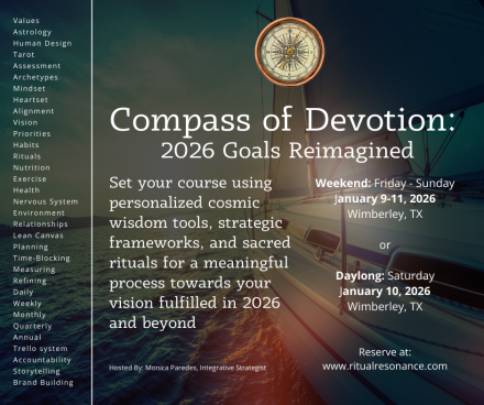 Ritual Resonance is a methodology for self-development that blends the metaphysics of astrology, Human Design, Gene Keys, Tarot, and eco-somatic therapies with